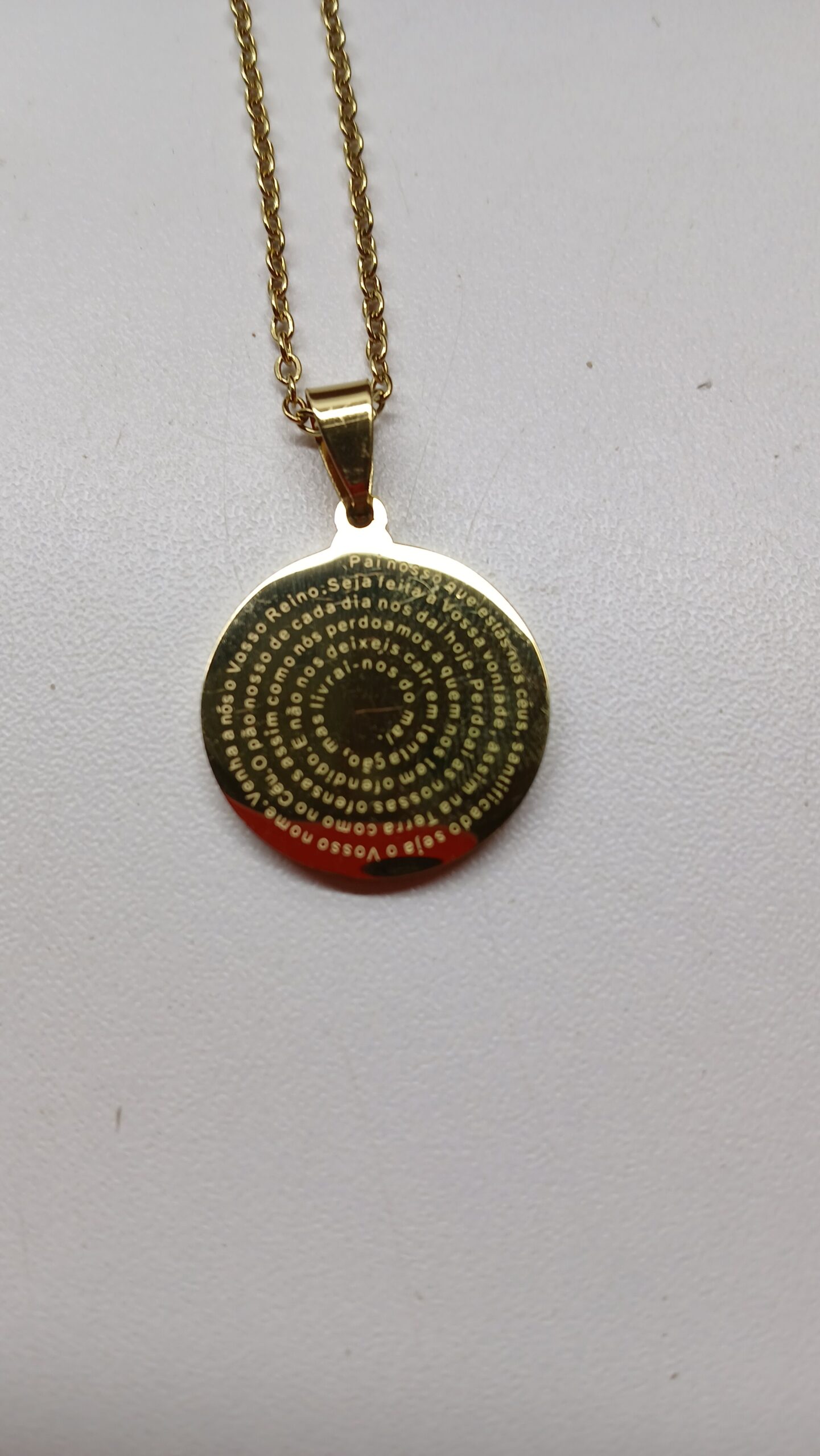 O Colar Dourado Pai Nosso em Aço Inoxidável é uma peça de fé e proteção que une espiritualidade e elegância. Gravado com a oração do Pai Nosso, este colar simboliza devoção, força interior e conexão com o divino. Produzido em aço inoxidável de alta qualidade, possui durabilidade, resistência e acabamento dourado sofisticado, ideal para uso diário sem perder o brilho. É um acessório que transmite espiritualidade e estilo, perfeito para quem deseja carregar uma mensagem de fé sempre consigo.