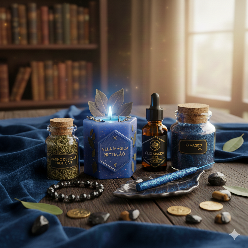 Este kit é ideal para quem deseja alinhar espiritualidade e prática ritualística, fortalecendo a energia de proteção e mantendo sua aura livre de influências negativas.